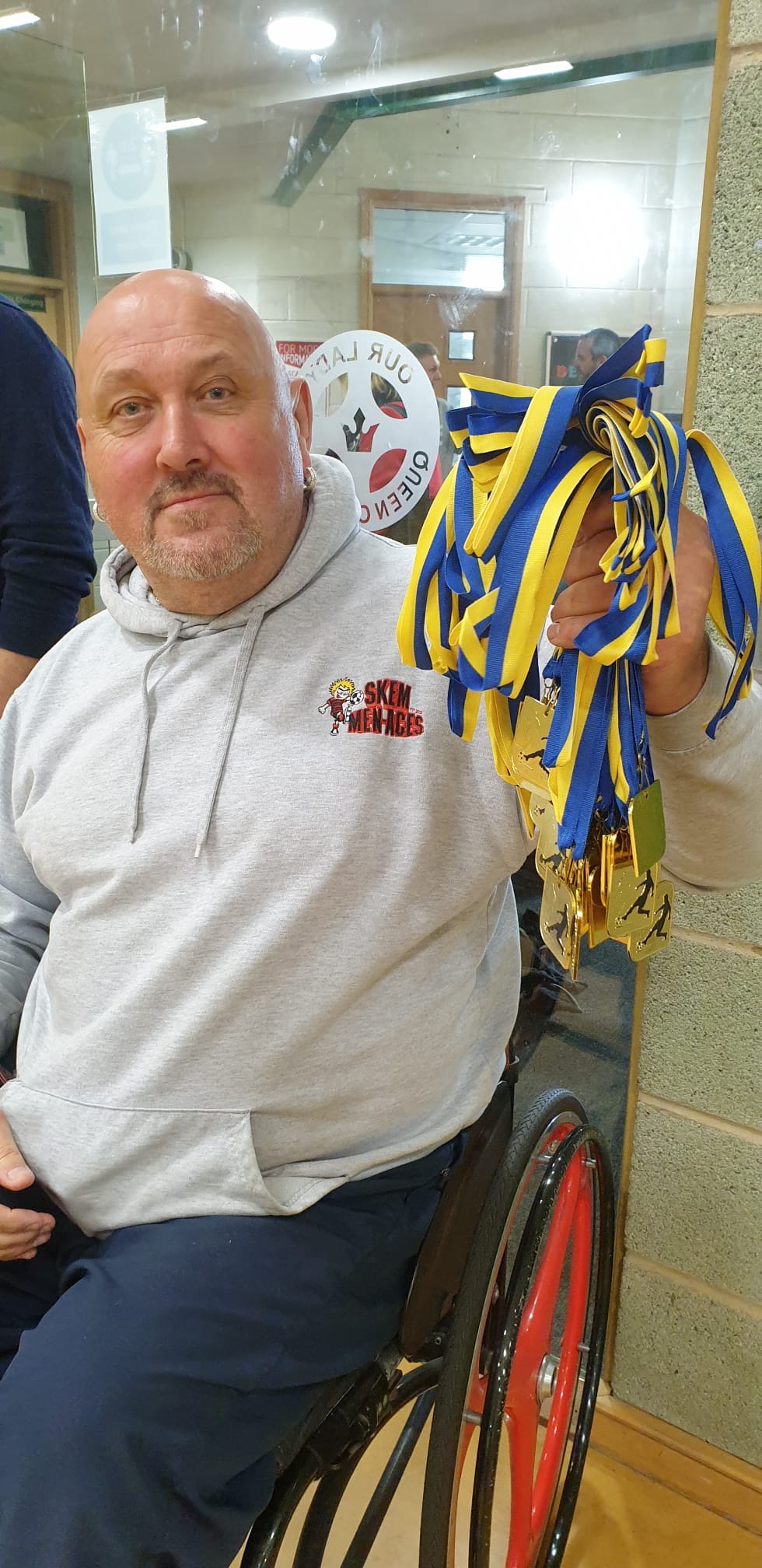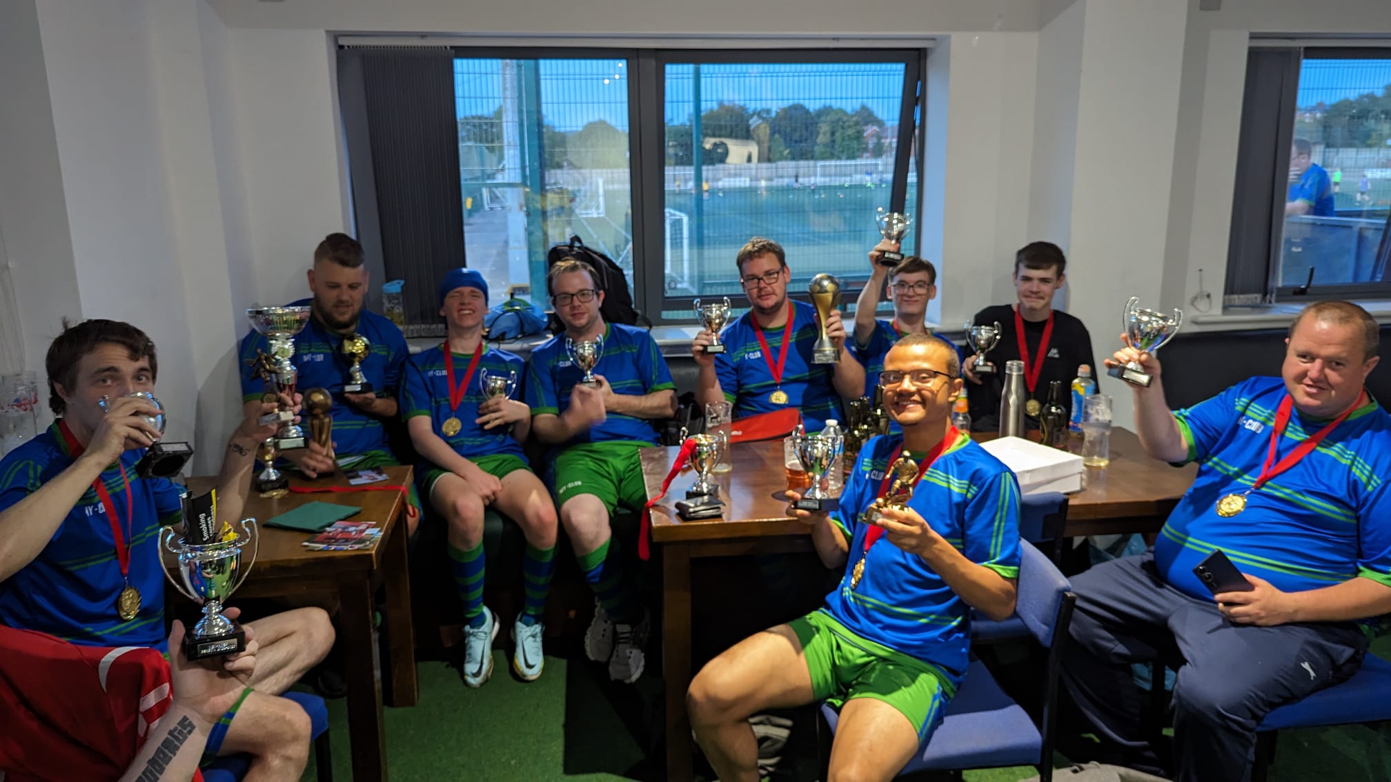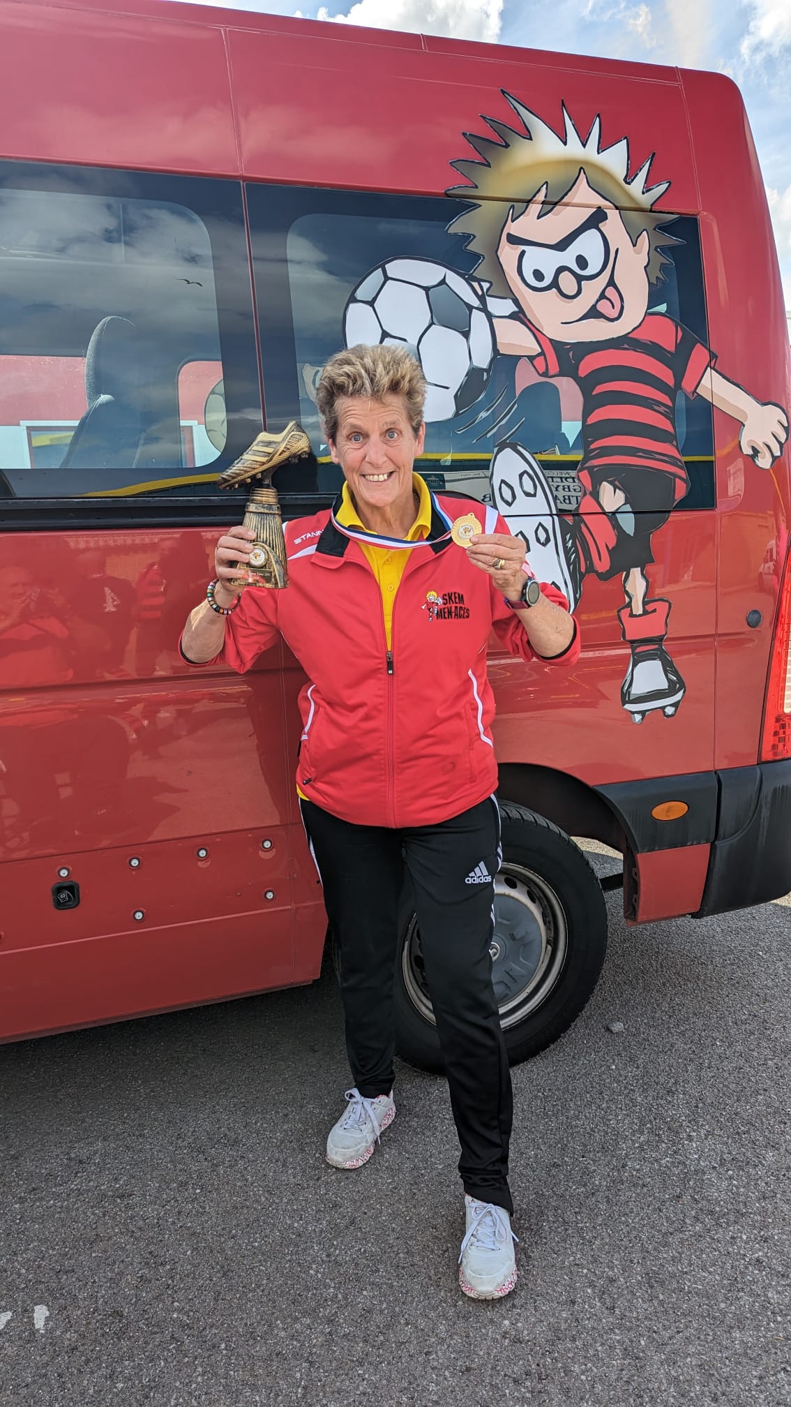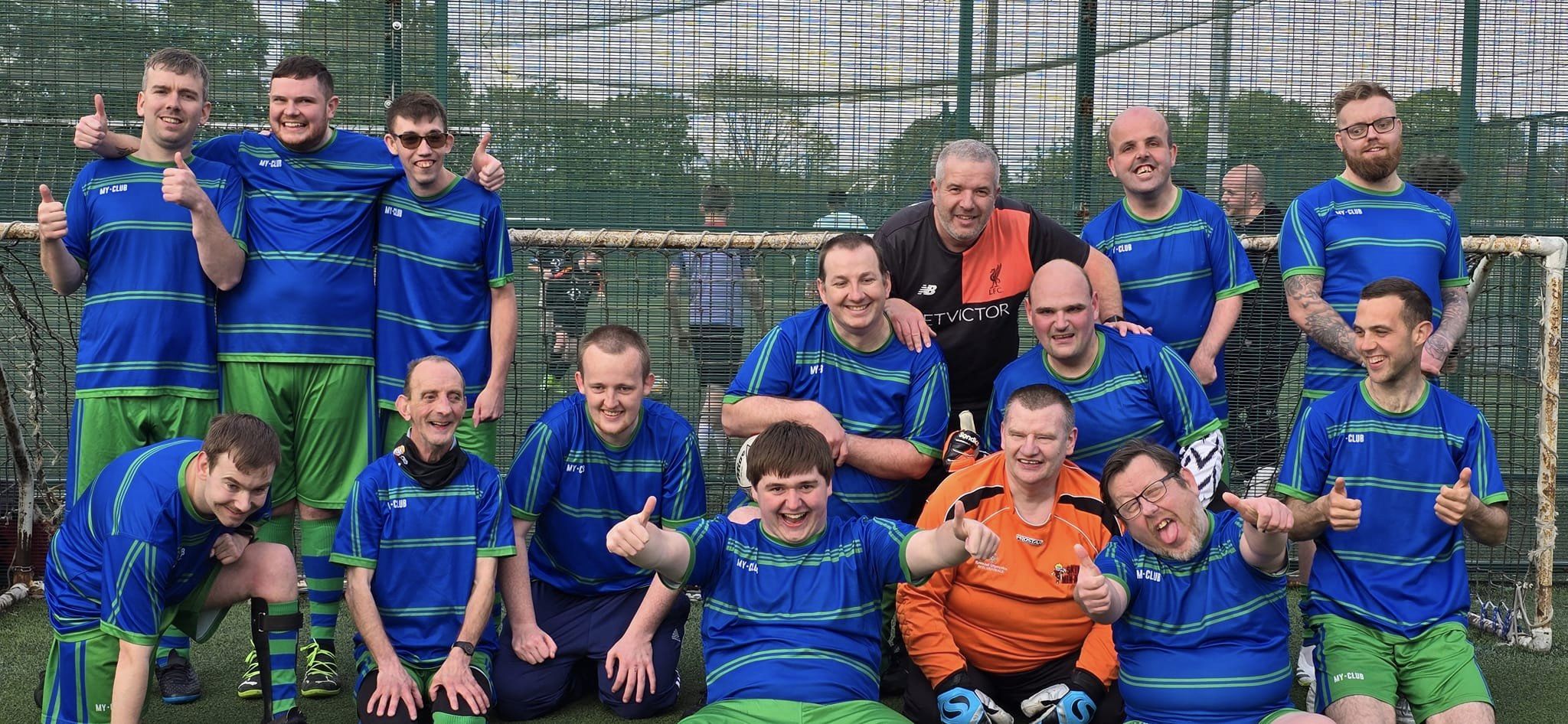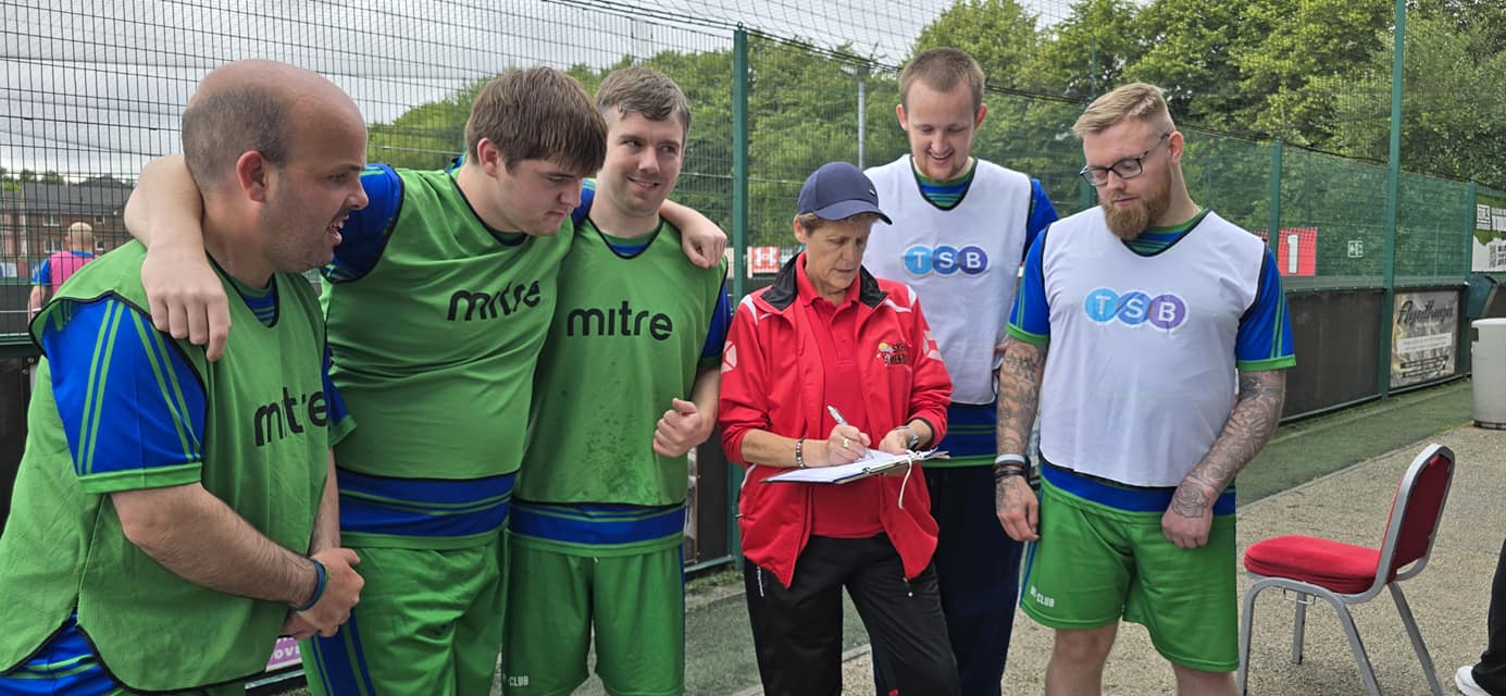 Our journey has been a rollercoaster of emotions, filled with challenges and extraordinary achievements. From those early days of playing on borrowed time with two coats serving as goalposts, we’ve grown into a formidable force of sixty players. The Skem Men-Aces are now synonymous with success, our trophy cabinet a testament to our dedication and talent. A Queen's Award for Voluntary Services, Silver medals at the Special Olympics, and the Freedom of the Borough of West Lancs and BBC Unsung Hero are just some of the accolades that adorn our name. Our players have not only conquered domestic football but have also proudly represented their country on the international stage.